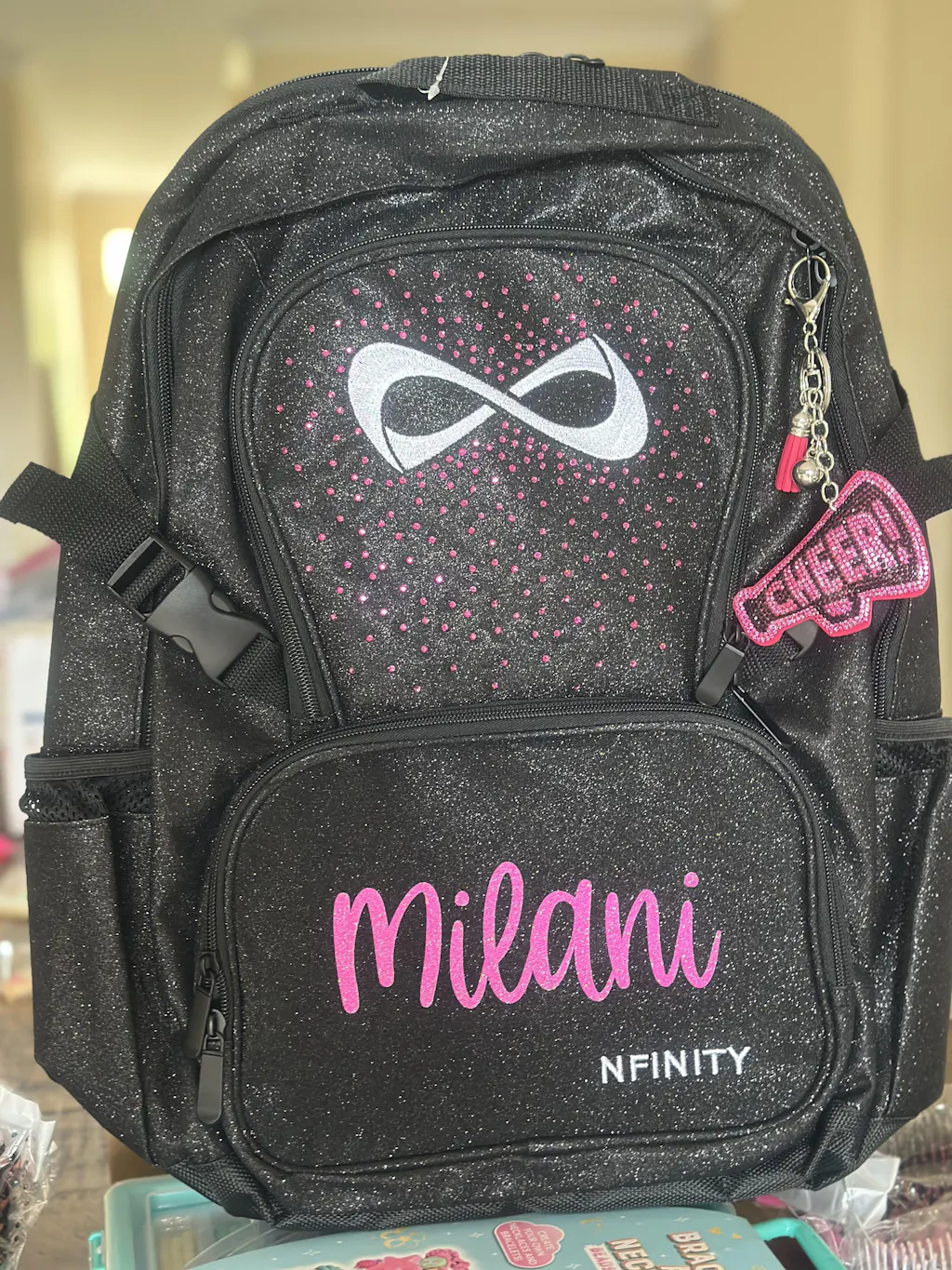 This stylish sparkle backpack is perfect for cheerleaders and dancers who want to make a statement. Made with high-quality materials and featuring eye-catching sparkle details, this backpack combines functionality with glamour.